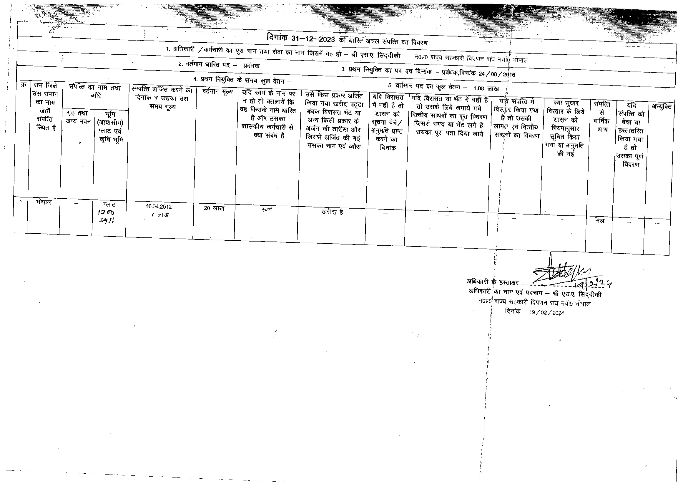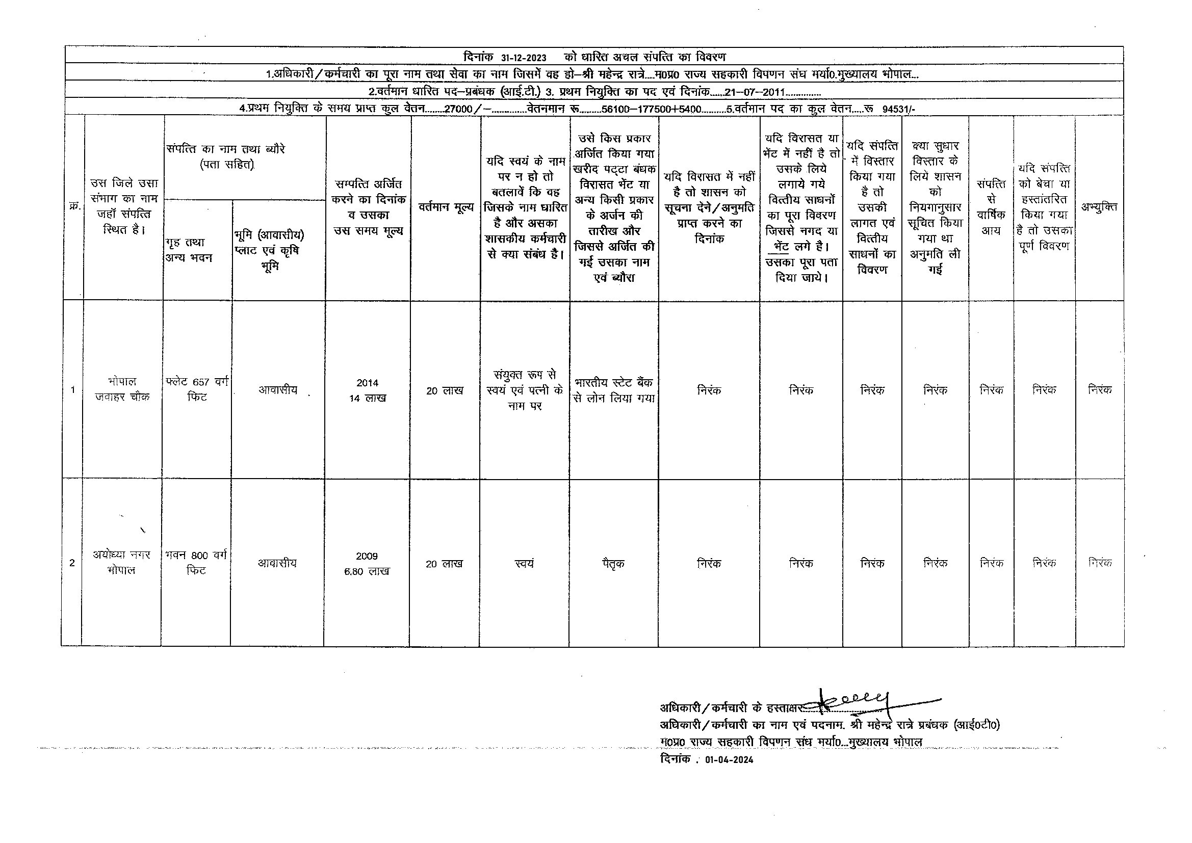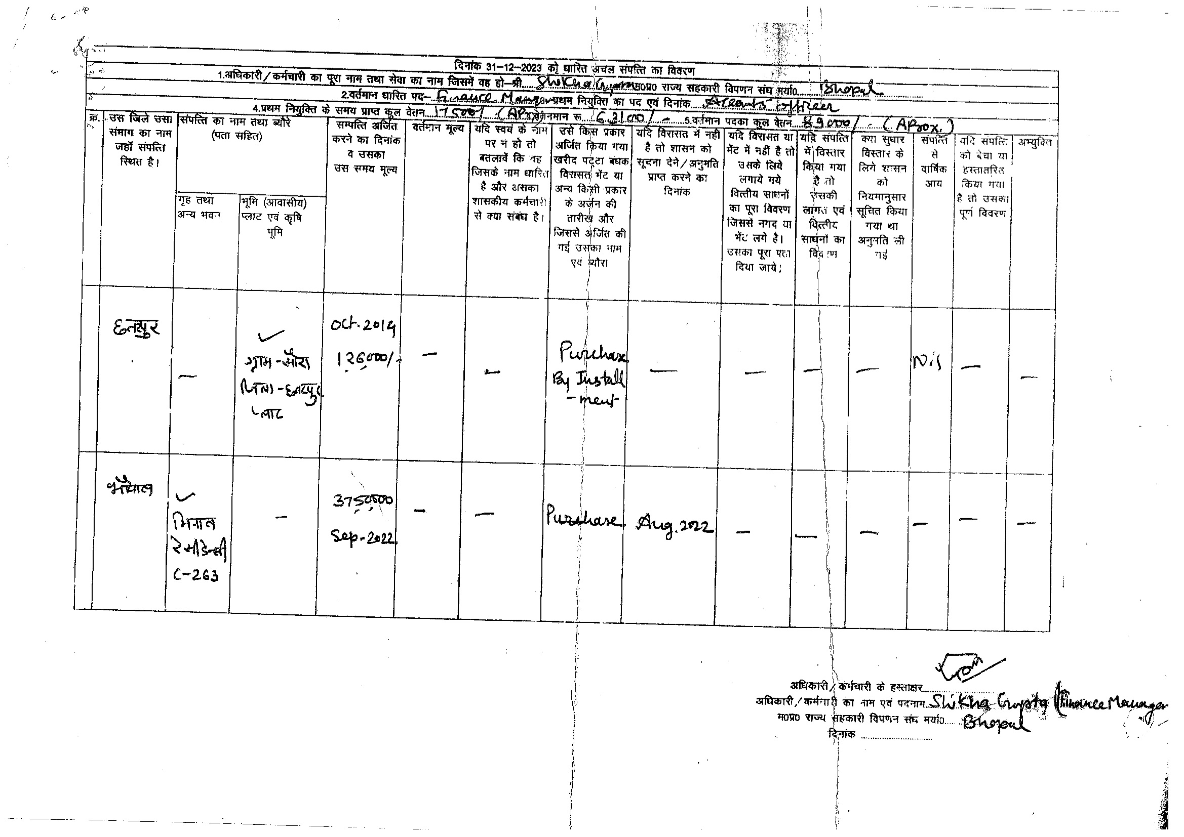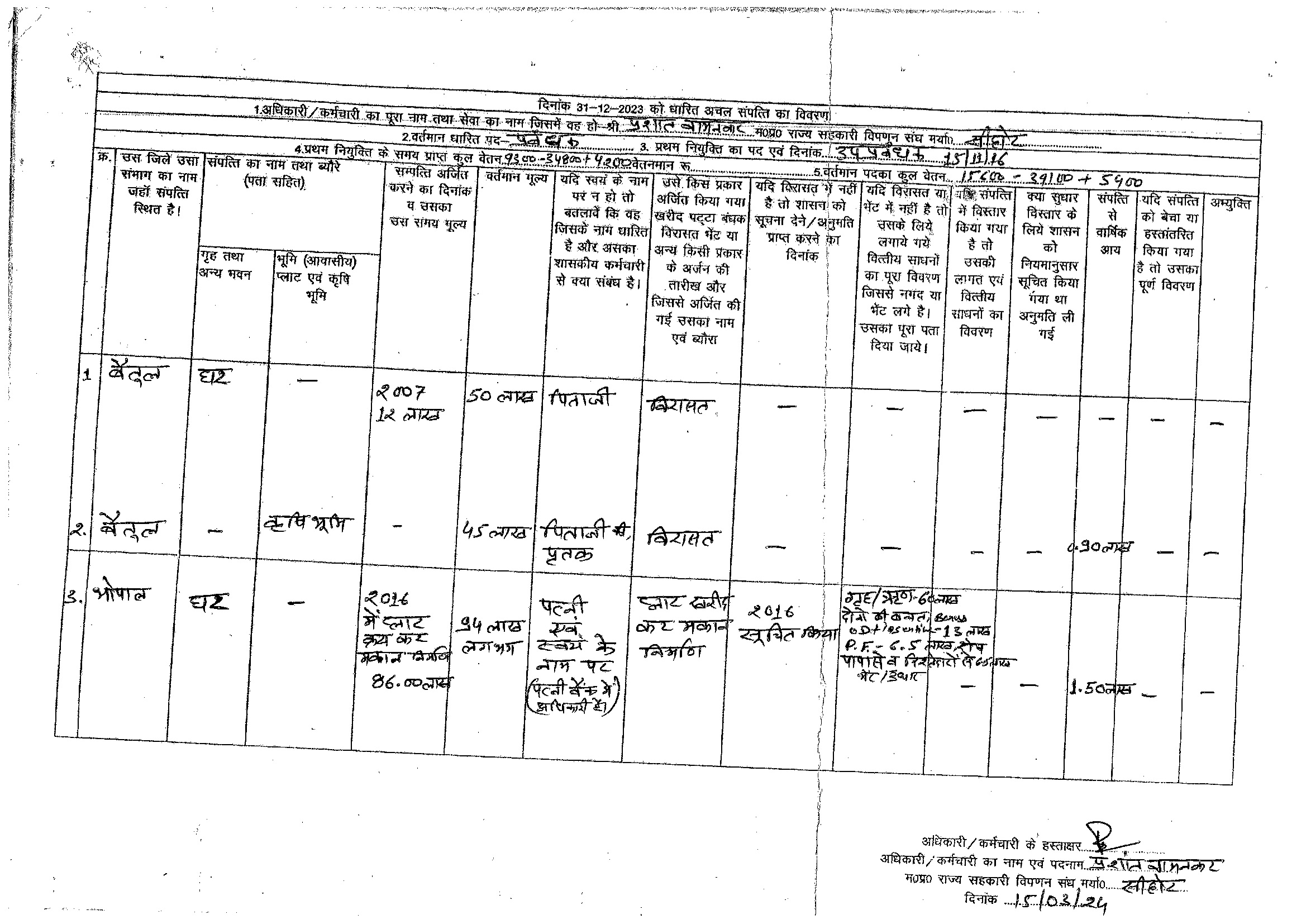 S.No. | Nameh | Assets Detail | |