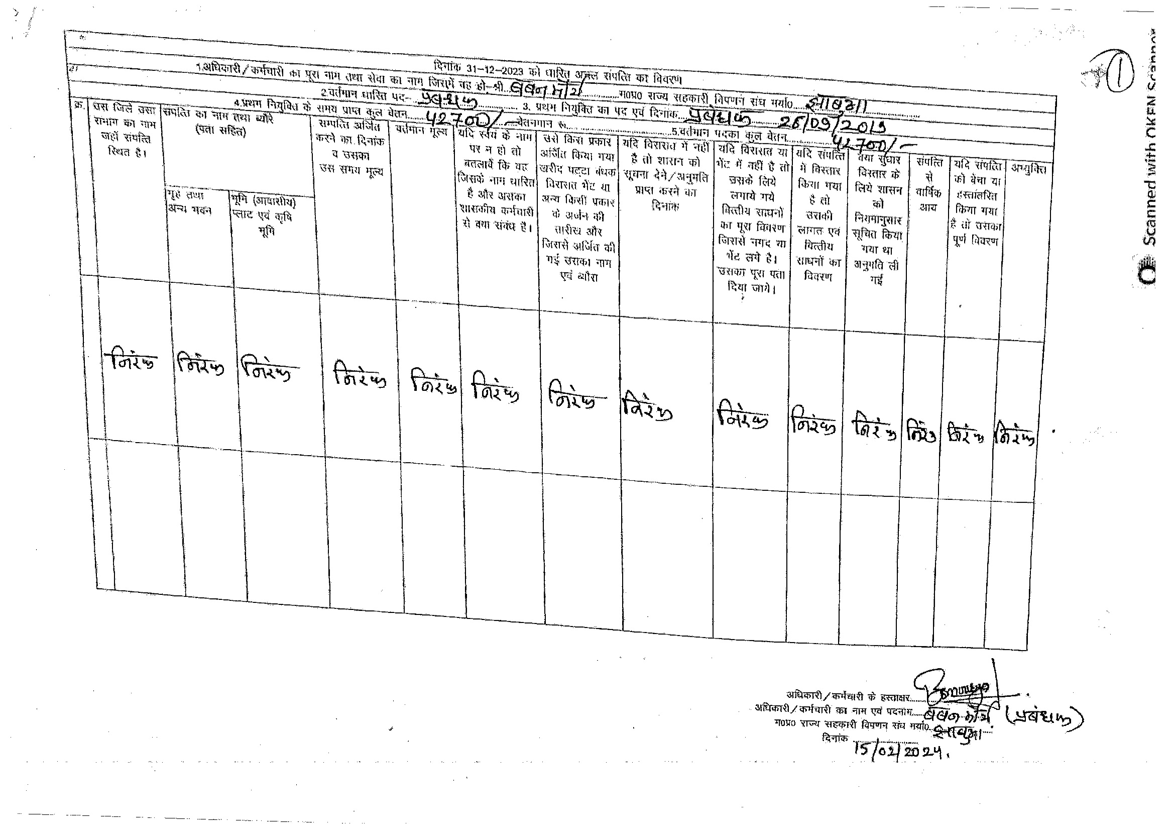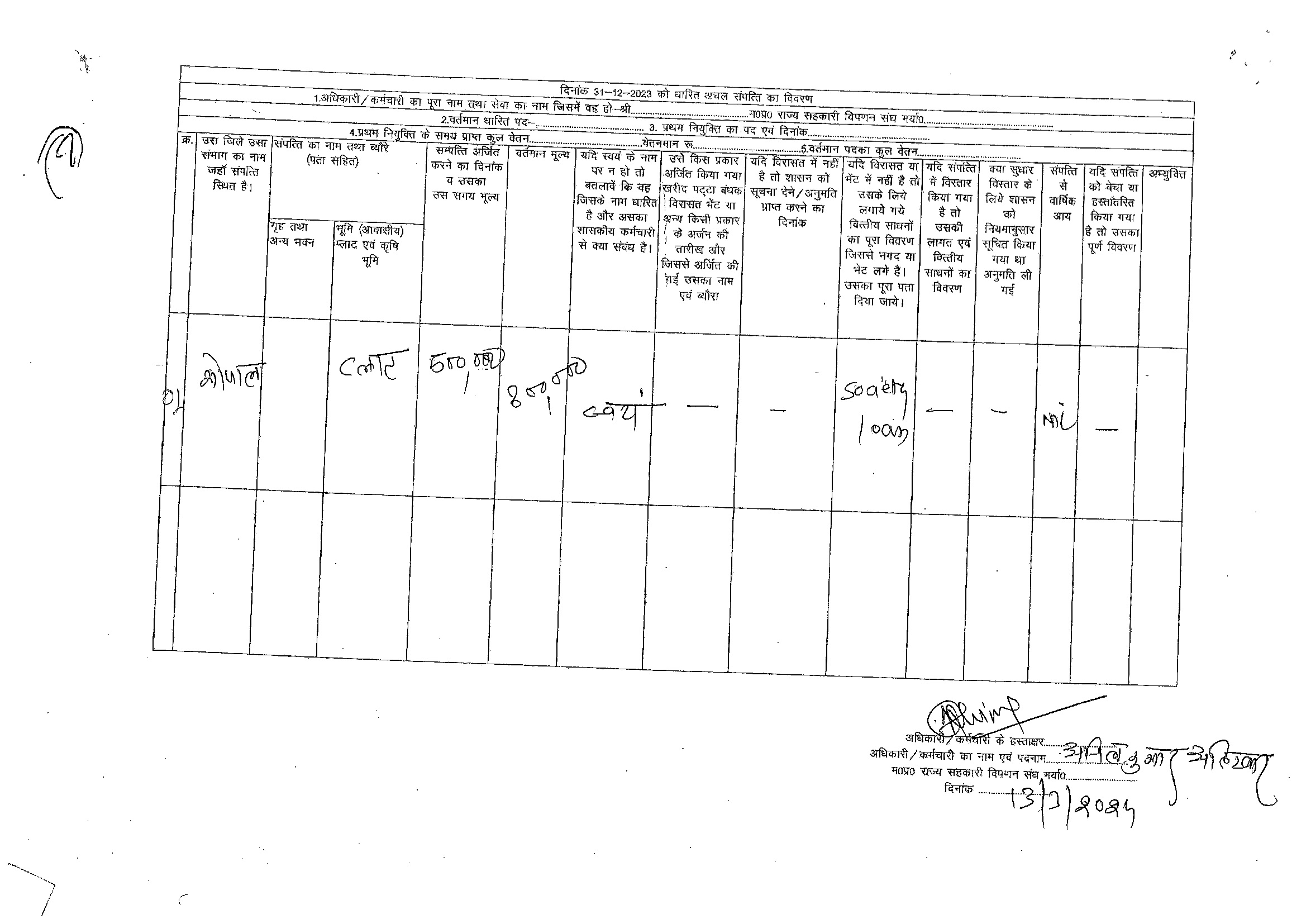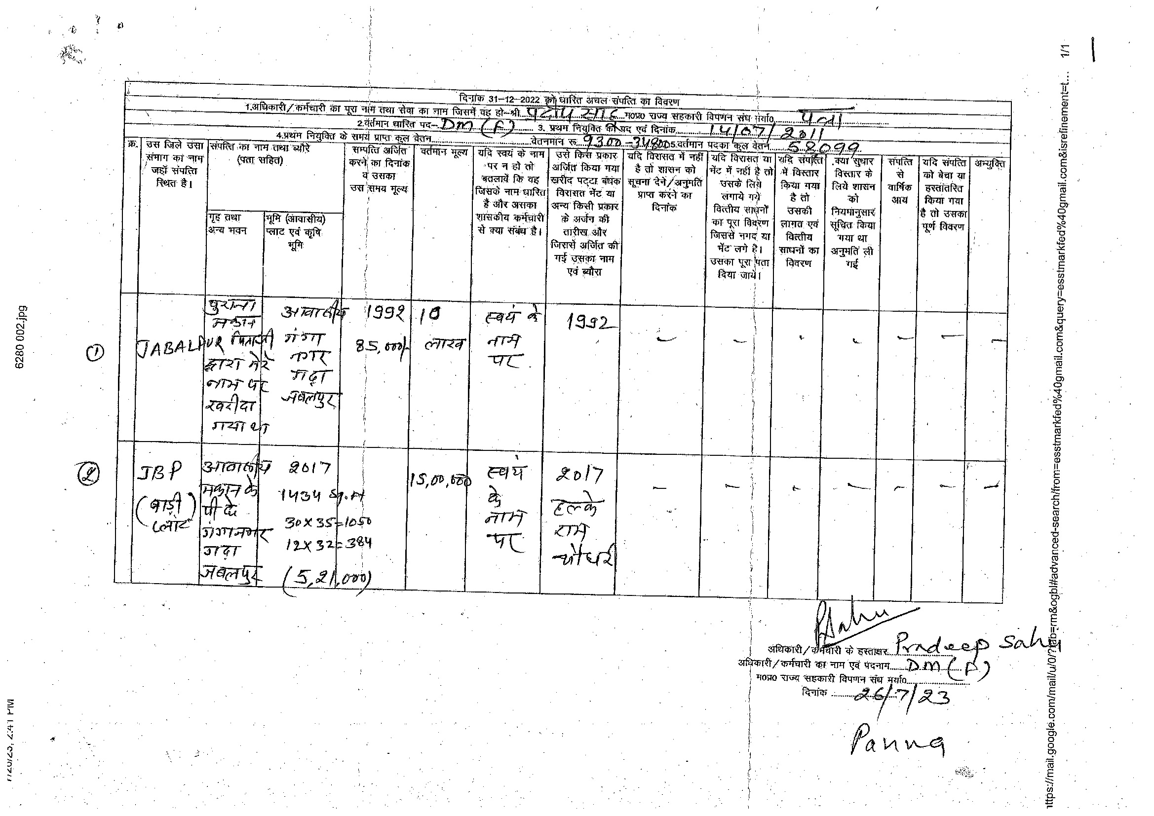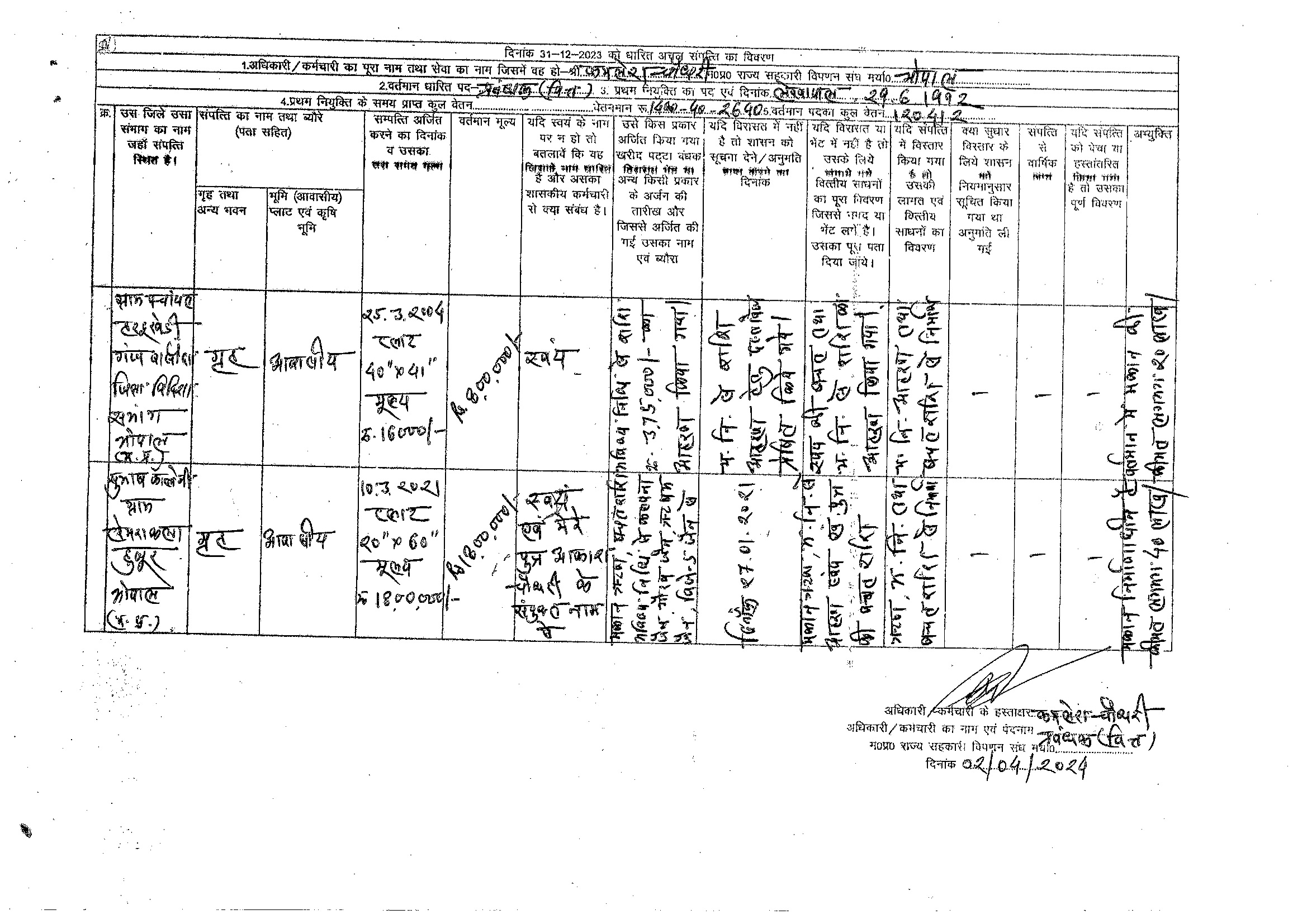 S.No. | Nameh | Assets Detail | |